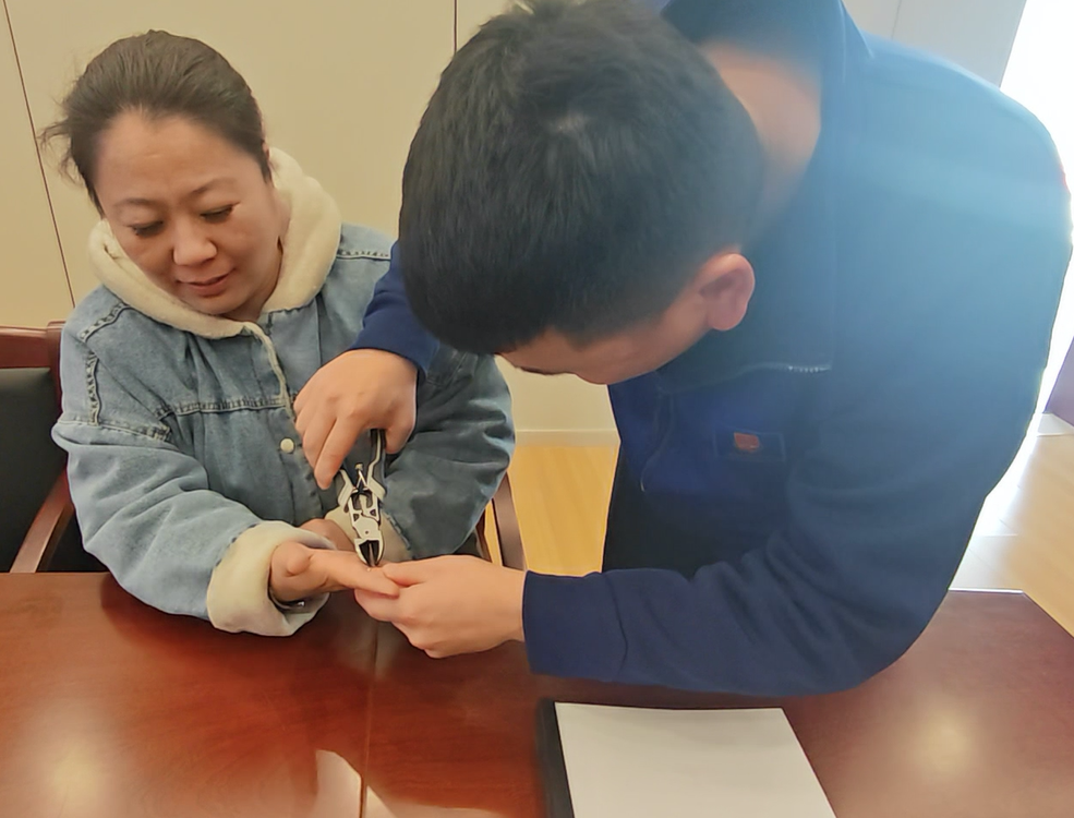 为幸免对女士手指变成二次伤害,支援东说念主员先涂抹润滑剂,随后使用斜口钳等专科破拆器具,防卫翼翼地对适度进行剪切。操作经过中,支援东说念主员时刻关爱女士响应,轻声安抚,并精确界限剪切力度与速率。经过近两分钟弥留功课,适度被生效剪断取下。女士手指虽有红肿,但所幸并无大碍,她连连向消防员说念谢。